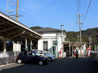 加太駅前の広場は狭い。線路と道路に挟まれた格好で、クルマが数台とめられる程度だ。名所案内によると、1kmほどの距離に淡島神社がある。名前からして海が見えそうで景色にも期待できる。しかし私は次の電車で折り返す。未乗路線に乗る予定が詰まっているからだ。鉄道が目的の旅とはいえ、こういう仕儀はどうかと思う。多奈川からここまでの海岸沿いを、バスで乗り継ぐ、という手だてもあったはずだ。それも鉄道のほうが早い、と諦めてしまった。