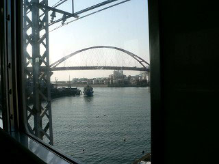 真っ赤なアーチ橋が見えた。地図を見ると紀ノ川河口大橋とある。その橋の向こうは住友金属の工場で、さっき加太線の車中から見えた風景を反対側から眺めたことになる。そう思うと、この工場の規模の大きさに感心する。こんなに大きな工場で作るものは、やはり船で輸送するしかないのだろう。日本の加工貿易の発展と海運は強く結びついているのだと実感する。