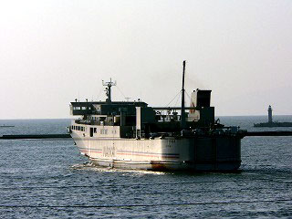 せっかくだから港へ行こうと思った。駅を出て、案内看板にしたがってブリッジを歩いていくと、小さな切符売り場と改札口がある。そこから先は船の利用者しか入れないらしい。ブリッジからは景色が見えないし、ここから先には行けないので、仕方なく同じ通路を戻る。帰りの列車をホームで待っていると、低い汽笛が響き、フェリーがゆっくりと動き出した。