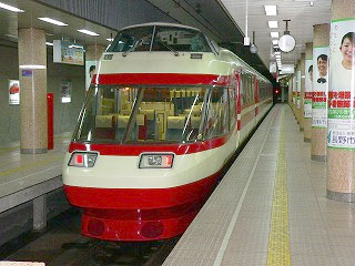 発車時刻が近づいて、背後が賑やかになってきた。HiSEの展望席は階段状になっているから、最前列ではなくても展望は良い。座席の半分がこどもである。「スザカまでいくぞ。そこにおじいちゃんのクルマがあるから」という声が聞こえた。わざわざロマンスカーに乗るために長野駅に来たらしい。小田急の看板列車だったロマンスカーが来て以来、長野電鉄は遊園地の乗り物の代役を果たしているようだ。地元の鉄道の愛され方として良い話ではないか。「ロマンスカーに乗っておじいちゃんちに行きたい」などと孫が言ってくれたら、年寄りにとってロマンスカー様様である。長野電鉄は粋なことをしてくれた。