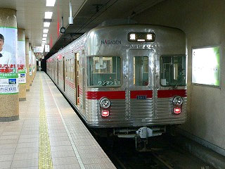 その隣のホームには各駅停車が停まっている。この電車も懐かしい。かつて営団地下鉄日比谷線を走っていた3000系。正面の表情から付けられたあだ名は「まっこうくじら」である。かつては東急東横線にも乗り入れており、私も何度か乗ったことがある。姿を見かけない思ったら、こんなところで余生を送っていた。
