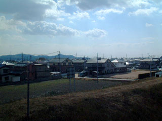 西尾までは住宅地として発展した都市近郊の路線だったが、西尾から先は住宅の密度が小さくなり、遠くに山も見えてローカル線らしくなる。ただし、住宅が極端に減るわけではなく、2両編成の電車とは違和感がある。東京近郊なら単線でも4両くらいで走っても良さそうだ。人口はけっして少なくないのだが、鉄道の需要が少ないのだ。愛知県はトヨタ自動車のお膝元というだけあって、主な移動手段は自動車なのである。よくみると、どの家にも駐車場があり、そのほとんどが2台分以上の広さである。