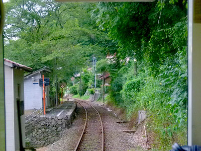田津駅を出ると、列車はやや速度を上げた。ここから本気を出すかと思ったら、またノロノロ運転に戻る。30km制限の標識が多く、ちょっとスピードが増すと思ったらまた下がる。私がクルマを運転するなら、こんな道は我慢できない。お巡りさんがいなければ……などと考える。でも鉄道は安全第一、速度厳守。運転に忍耐が必要な路線である。
