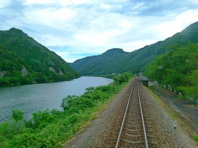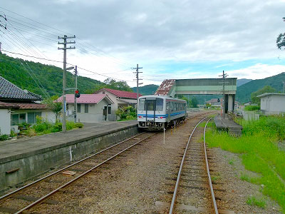こういう駅は降りて楽しみたいけれど、降りたら次は9時間後である。せめて車窓からじっくり眺めておきたい。窓のないトイレに入る場合ではなかった。慌てて座席に置いたカメラを拾い、後方に去っていく駅を眺め、撮ろうとしたらトンネルに入ってしまった。三江線に乗って、この駅を見過ごすとは間抜けすぎる。用を足してホッとしたと思ったら、もう落ち込んだ。三江線と私の将来を思うと、残念ながら、再訪する可能性は極めて低い駅であった。