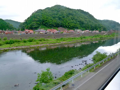 列車はまたノロノロ運転になった。口羽は三江南線の終点だった駅で、つまりは新旧線路の境界であった。トンネルはなくなり、列車は川の右へ左へと鉄橋を渡る。岸に取り付きながら、蒸気機関車が走りやすい程度の勾配を作った。そんな様子をうかがわせる線路である。式敷でおばちゃんが3人乗った。そうか、もう三次市の経済圏だ。
