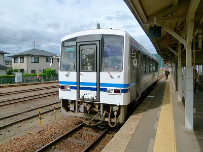 車内が寒いので尿意を催す。この列車で二度目である。血糖値が高かった頃は頻尿状態だったから、これでもかなり良くなった。たった1両のディーゼルカーにトイレがあって助かる。が、このトイレはタイミングが悪かった。高規格の線路だからか、速度が上がると揺れが収まる。トンネルに入ったこともあり、この隙にとトイレに入ると、列車はたちまち速度を落としてどこかの駅に停まった。