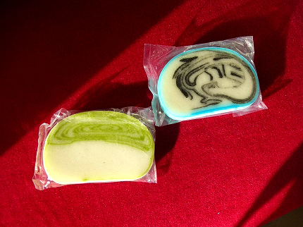 こちらでは知られたお菓子、というなら、スーパーにもあるだろう。もう一度店内を探すと、パンコーナーの隣の棚にあった。こちらは白と薄いピンク色。こちらも買う。食べ比べである。M氏に半分食べてもらおうと思う。