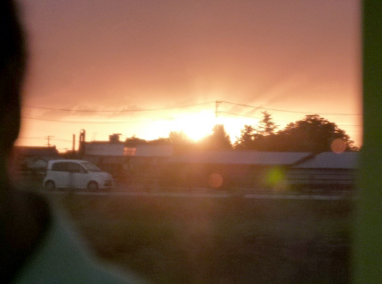 晴天が続き、遠くに岩木山が見えた。平賀駅の凸型電機を見る頃には暗くなっていた。弘前で乗り替えた奥羽本線の車窓は、夕日に染まった。新青森の接続は10分。駅弁を買って慌ただしく新幹線電車に乗り込む。新青森