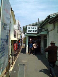 西武秩父駅から徒歩で秩父鉄道の御花畑駅に向かう。西武鉄道と秩父鉄道は線路がつながっていて、西武鉄道から秩父鉄道に乗り入れる列車もある。しかし線路が交わる部分に駅がない。直通列車は休日に2往復だけしかないから、乗り換えは不便だ。しかも、西武秩父駅の改札と御花畑駅の改札は秩父鉄道の線路を挟んで背中合わせになっている。改札同士の距離は200メートルほどだから、大したことはないけれど、踏切を渡る必要がある。