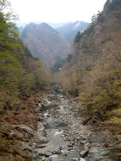 その風景をバスがふさぐ。私はバスの待合室の前に立っていたのである。このバスでロープウェイの駅がある大輪(おおわ)へ向かう。この沿道、国道140号線の風景もひなびている。数人の客を乗せたバスは、左右にくねりながら谷間を進む。谷底の川は細いけれど、流れが速い。これは荒川で、下っていくと東京湾に注ぐ。悔しいけれど、このバスの車窓は秩父鉄道の車窓より楽しい。不便なところほど自然が残り、景色がよくなる。当たり前のことではある。
