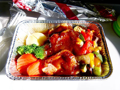 ただし、この狭ささえ許容できれば、そんなに悪いフライトではなかった。アテンダントさんたちは、それぞれ異なった髪型でかわいい。制服以外は個性を発揮できるようだ。彼女たちのなかで、もっとも笑顔の良い子が、私の席に機内食を届けてくれた。もちろんこれは別料金で、チケットを予約するときに合わせて注文した。既存の国内線は食事サービスを提供しない路線も多いけれど、エアアジアは注文すれば食事ができる。これはメリットのひとつといえるだろう。洋食で鶏肉のランチボックス。肉も柔らかく、ローストチキン風の味付けで美味い。しかし、この密着度だと、何も食べていない隣の人に申し訳なく思ってしまう。興味があって食べてみたけれど、1時間半のフライトでは不要かもしれなかった。