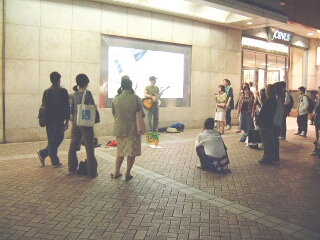 横浜市営地下鉄は北端のあざみ野から横浜駅を経由して、西端の湘南台まで40.4キロメートルの路線だ。このうち横浜から西側が未乗区間である。横浜駅は帰宅ラッシュで雑踏していた。ストリートミュージシャンと、彼らを囲む人々をすり抜けて地下へと降りる。ホームの先端にある自動販売機のジュースで喉を潤し、ちょっと気持ちが落ち着いた。ごみ箱に落書きがある。“体が基本、元気が基本”まったくその通りだ。ほどなく銀色の電車が来た。やはり勤め帰りの人が多い。私のそばに立つ若い女性は“痴呆介護”という冊子を熱心に読んでいる。看護学校の生徒さんかも知れない。
