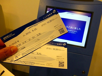 問題がなければ、さっき見えた搭乗券発見機へ。タッチパネルに予約番号と電話番号の下4桁を設定する。予約したときに、固定電話と携帯電話のどちらを使ったか忘れた。固定電話では失敗。携帯電話を打ち直したらOK。母と私の搭乗券がプリントされた。搭乗券には2次元バーコードが印刷され、搭乗口を入るときに使う。ますます旅客機方式である。