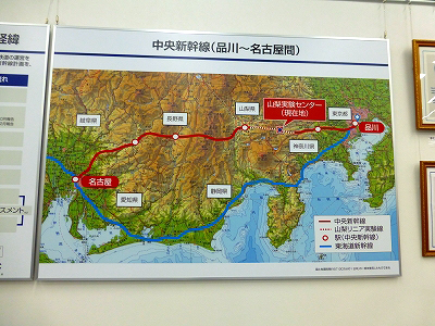 説明会が始まるまで、壁の掲示物を見物する。超電導リニアの原理、リニア実験線の紹介、安全性についてなどのパネルが並ぶ。ギネス世界新記録の認定証が二つあった。2003年の時速581kmの世界一と、2ヵ月前、2015年4月21日の時速603kmの認定証だ。もちろんどちらも世界一。自己新記録の更新であった。営業運転は時速500kmの予定だけど、性能としては時速600kmを目指し、余裕を持った時速500kmで運行させたいという。そんな記事を読んだ気がする。