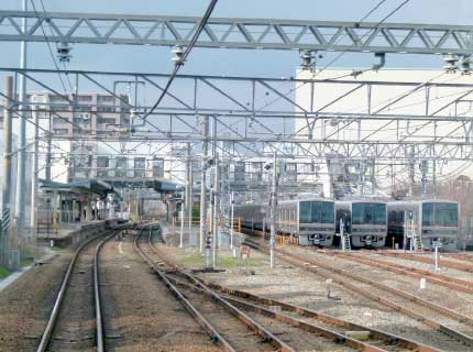 塚口駅。夕刻のラッシュに向けて待機する電車たち