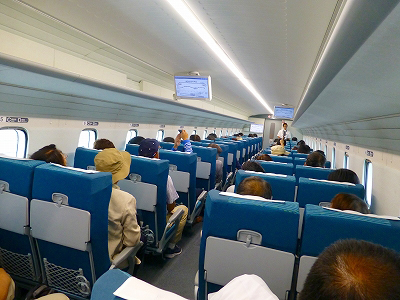 座席に座ったまま、すこし背を伸ばして車内を見渡してみた。気軽な服装が多く、帽子を被った頭もいくつか。スーツ姿がないから、新幹線のようで新幹線らしくない様子であった。座席の背面にテーブル、ポケット、ドリンクホルダーがある。パタパタと動かす人はいるけれども、もちろん使う人はいない。