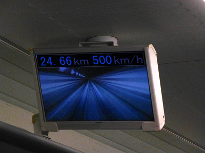 時速160キロを超えると浮上モードに入り、振動がすこし収まった気がする。これはちょっと意外だった。もっと静かになると思っていたからだ。浮いた感じはしない。ジェット旅客機の機内にいる感覚である。リニアモーターカーだから特別な感じがある、というわけではない。