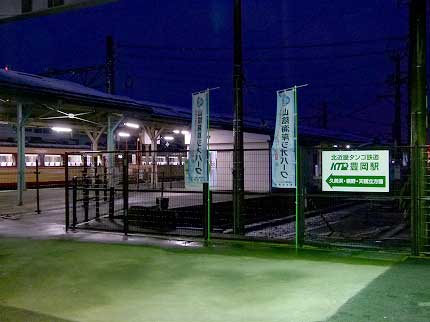 転換クロスシートがずらりと並ぶ。席を選び放題で、かえって戸惑う。運転台の後ろは暗幕が降りている。雪で前方は見渡せないだろう。私は中央の座席を選んだ。前の席の背もたれを向こうへ倒せば4人分の席をゆったり使える。しかしそれは遠慮した。赤字路線とはいえ、朝の列車は通学客などで混雑するものだ。地方鉄道を侮ってはいけない。