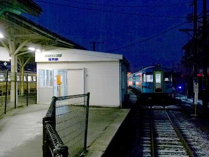 駅舎の明かりはあるが窓口は無人