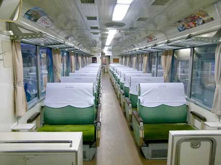 転換クロスシートの車内。貸切だ