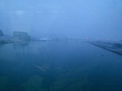 今朝は5時にぱっちりと目覚めた。外はまだ暗かった。支度を整えて部屋を出て、フロントに置いてある箱のなかに部屋の鍵を放り込む。安ホテルの宿代は前金が原則で、昨夜済ませている。非常口のドアを開ける時、もう一度荷物と服を確認した。この非常口は外からは開かない仕掛けになっている。一晩で、雪は小雨に変わったようだ。