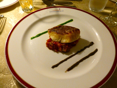 日本では何かというと鮮魚が出てくる。なぜだ。思考停止ではないか。前菜の“海の幸とグリーンアスパラムースのサラダ仕立て”はまるごとM氏に進呈する。真鯛のポワレは火が通っているから食べられる。良い按配に潮の香りを残しており、魚好きには嬉しいだろうけれど、私には気になるところだ。気取ったサイズの牛フィレ肉のソテーはおいしくいただいた。