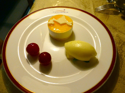 デザートはケーキとアイスクリームの盛り合わせ。それぞれ5年前に母と乗った時とは違う料理だったけれど、構成は同じだ。リピーターを喜ばせようという工夫を感じられない。人気があったし、2度目の客たちはハブタイムにアラカルトを頼むという選択肢もあるだろう。それにしても、冒険心のない食堂車だ。