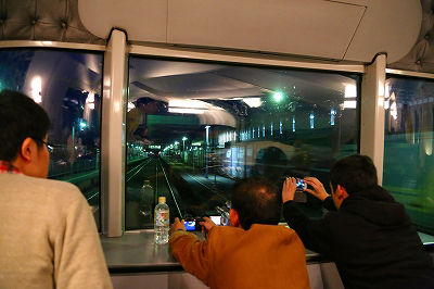 運行終了が正式に告知されて、カシオペアの乗客は鉄道ファンの比率が高まったようだ。私たちのあとからも乗客が訪れる。北海道新幹線の運行が始まると、在来線の旅客列車ではこの区間に乗れなくなる。展望車の眺めもこれが最後。JR東日本が計画しているクルーズトレインは北海道運行を目指しているというけれど、手を出しにくい価格である。そう思うと、眠らずにこの景色を見届けられて良かった。