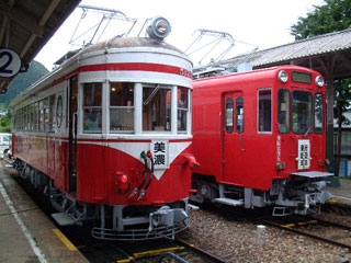 この路線は眺望への期待を裏切らない。山肌の新緑の見事なこと。濃緑と黄緑が迷彩塗装のように複雑な模様を描いている。濃緑は山間部に多い針葉樹で、黄緑は平野部に多い広葉樹であろう。山と平野の境界線ならではの、珍しい景色ではなかろうか。山の行楽といえば春の桜、秋の紅葉が筆頭だが、この新緑は観光資源に値すると思う。長良川鉄道はトロッコ列車やお座敷列車を運行し、温泉を絡めた観光に力を入れている。第三セクターの珍しい成功例だ。