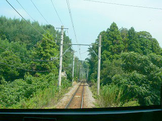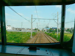 私のきっぷ「まるのり1Day」は、日中に限り特別車の空席に座って良いことになっている。しかし、後ろ向きではつまらないし、すぐに降りるので、その権利は行使しなかった。私はホームの先まで歩き、先頭車の運転台の後ろに立った。客室はガラガラに空いており、好きな位置で特別車よりくつろげそうだ。しかし今はいけない。実は、船に揺られている間は眠くて仕方なかった。新規乗車路線だし、ここはしっかり目を開けて景色を見たい。だからあえて立っている。まるで修行だ。