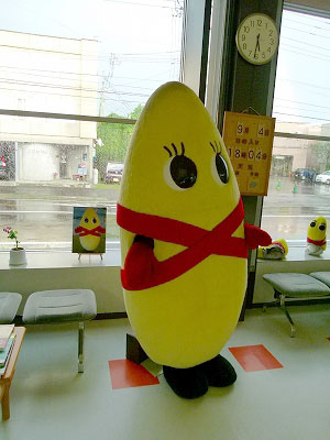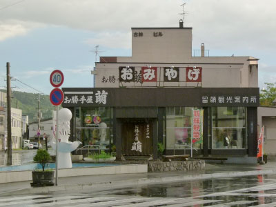 自由も閉ざされてしまったかと寂しさを感じつつ、とぼとぼと歩くと観光協会の建物があった。「お勝手屋 萌」という店を併設している。おみやげ屋のようだ。中に入れば客は私一人。店員は二人。過剰接待になりそうである。時間もあるし、ここで土産物などを物色する。留萌は全国一のイクラ加工量だという。カズノコ型の着ぐるみが置いてある。動かない。