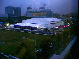 しかし私はビッグサイトに一番近いゆりかもめの駅、国際展示場正門へ向かった。傘を持っていないから、が建前。久しぶりにゆりかもめを乗り通したい、が本音だ。ゆりかもめから見る夜景が楽しい。東京の鉄道車窓のなかでもAクラスである。普段はバイクで来てしまう場所だから、今日はゆりかもめを楽しみたい。本音を言うと、お台場で降りて携帯電話で友人を呼び出し、遊んで帰りたい。また心の中に悪魔が現れたが、そこまでやると仕事を失うから踏みとどまった。