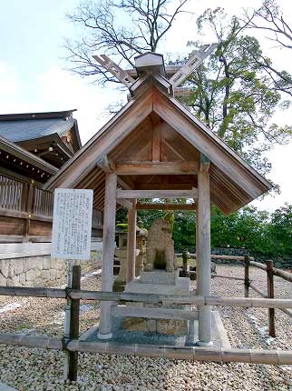 信心の薄い私は、祭神よりも狛犬のほうが興味深かった。鎌倉時代の作で、石造狛犬として日本一の名作という。そういうからには狛犬研究の権威がいるらしい。しかし、そこかしこで見かける狛犬よりズングリとしているし、大切にされているらしく木造の屋根もかけられている。その姿はまるで愛玩犬で、なんともかわいい姿であった。