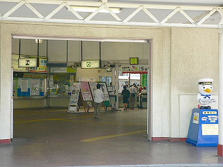 ようやく横須賀駅にたどり着いた。ここは路面電車を除くと全国でも珍しい"バリアフリー駅"として知られている。なんと駅構内に階段がまったくないのだ。駅舎に入り、コンコースから改札口を通ってホームに行くまで段差なし。平らな地面が続いている。意外にもこういう構造は珍しく、横須賀駅はもっとも歴史あるバリアフリー構造となった。その様子を写真に収めるべく、駅の外側からコンコース、改札口、ホームを貫くアングルを探した。あいにく逆光の時間帯になってしまい、欲張って駅名看板も入れようとしたため、構図としては美しくない。しかし、説明のための挿絵として使うには十分だ。