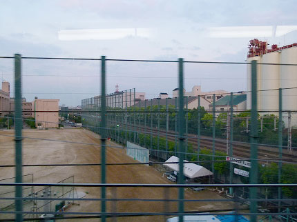 沿線は進行方向の右と左で趣が異なる。右はマンションなど低層ビルがぎっしりと並んでいる。左は大型ショッピングセンター、自動車教習所、学校、そしてビール工場だ。なんとなく、南武線の浜川崎支線に通じる雰囲気があった。東海道線の線路を超え、阪神国道駅を過ぎると両側に低層の建物が多くなり、遠くまで見渡せる。こちらは見晴らしがいいな、と思ったら、もう今津駅だった。
