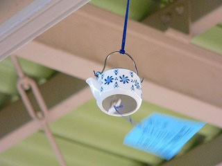 それでも尾張瀬戸駅は瀬戸物の町の駅だ。ホームの天井から瀬戸物の風鈴がいくつも下がっていた。小さいけれど、スイカや猫、鳥、金魚、急須、豚の蚊取り線香置き風など、いろいろな種類があって楽しい。そんな風鈴ギャラリーを眺めつつ改札へ向かった。この週末に『せともの祭り』が開催されるとのことで、駅周辺も飾り付けが施されていた。徒歩5分のところに『瀬戸蔵ミュージアム』があり、瀬戸線の古い電車が保存されているそうだ。しかし今は16時50分。博物館はたいてい夕方で閉館だろうから、今からでは見学する時間もなかろう。次の電車で引き返す。明るいうちにもうひとつの未乗路線に乗って帰りたい。