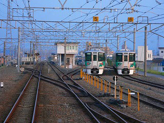 北野桝塚駅付近には三菱自動車の工場もある。おそらく岡多線の輸送量に期待した立地だろう。矢作川を越えると岡崎の生活圏になる。矢作川が工業地帯と都市との境界線になっている。岡崎は東海道の宿場町として歴史のある町だ。八丁味噌の産地でもあり、徳川家康の出身地でもある。だから独自の発展をしてきたと思われるけれど、今では工場関係者の生活の地でもある。岡崎と北野桝塚の間も平日は区間運転が設定されている。単線と少ない車両をなんとかやりくりして、効率の良い運行を工夫している。北野桝塚の車庫には私が乗っている電車と同じ型がいくつか停まっていた。時刻は17時。夕刻のラッシュがもうすぐ始まる。