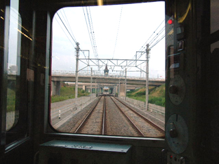 沿線には緑が多い。おいしい空気は機械には関係ないはずだが、電車も元気よく走っているような気がする。表定速度は55キロでも、その計算の中には停車時間や前後の低速走行時間が含まれているから、実際は時速100キロ近い速度で走り続ける。今日は住宅密集地をノロノロ走る電車を乗り継いできたから、このスピードが心地よい。時速40キロ程度でしか走れない電車が気の毒に思えてくる。