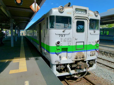 車窓は十勝岳方向を望みつつ、大農場の作物の生育ぶりを映し出す。次の山部駅で対向列車とすれ違う。旧国鉄の朱色、もしくはタラコ色と呼ばれる車両であった。この快速列車は『狩勝』の愛称がある。1950年に函館と釧路を結んだ準急『狩勝』、後の急行『狩勝』の伝統を受け継いでいる。現在は釧路発滝川行。走行ルートはこの列車と同じだ。ただし、快速だから、日本最長鈍行とはならない。快速列車としては本州に長距離夜行快速列車がいくつかあって、残念ながらこのルートでは日本一になれない。それでも釧路発05時45分、滝川着12時35分は魅力的だ。こっちにも乗ってみたい。いつか富良野線に乗る時は、釧路から北上してみようか。