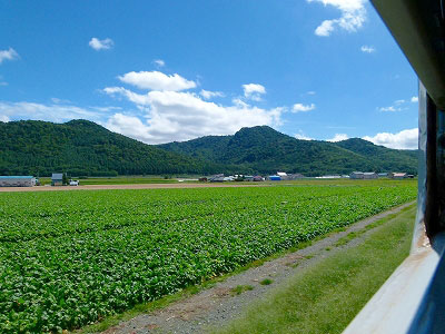ディーゼルカーは20分間で支度を整え、11時08分に発車する。車窓には広大な農地が広がる。さすが富良野の文字通り、と安直に感心してはいけない。この辺りはもともと、農業には全く不向きの土地だったという。富良野の語源はアイヌ語のフーラヌイ。その意味は「臭い泥」である。十勝岳から流れでた川の水は硫黄を含んでいたからだ。玉子が腐ったような匂いがしたのだろう。泥炭地帯でもあった。