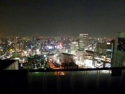 私はゆっくり歩いて、屋上を一周し、全方位の夜景を眺めた。改装が終わった大阪駅が最も明るい。いま、東京は節電で暗いけれど、節電をしていなくても、東京にここまで明るい場所はないかもしれない。明かりのデザインが新しい。省エネルギーのLEDを使って、同じ電気代でも明るさを増しているのではないか。