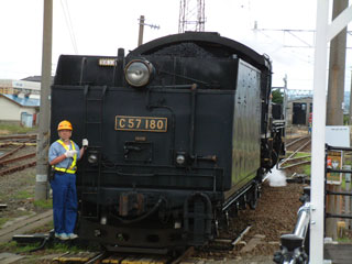 発車準備中のC57 180号機。