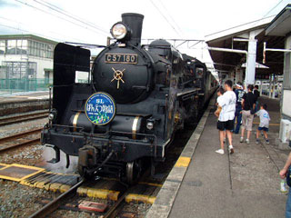 あとで判ったことだが、機関車に近い席は交代の運転士たちの席だった。真夏の蒸気機関車の運転席は暑い。ボイラーのそばだしクーラーもない。何度も交代しなければ身体が持たない。乗客は冷房付きで快適な旅だが、それを提供する側はたいへんな仕事だな、と思う。