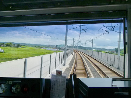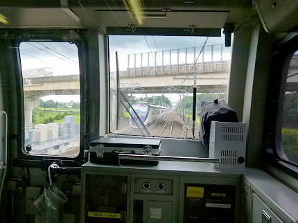 空席があるにもかかわらず、私は運転台の後ろに立った。前面展望を楽しむためだ。そう、これがスカイライナーではなく、在来列車を選んだ理由であった。スカイライナーの流線型の先頭車はかっこいいけれど、客室から前方への展望はない。そのかわり、スカイライナーはすべての客室のモニターに展望が映し出される。もっとも、案内画面の合間だし、小さな画面だ。運転台後部のかぶりつきのような迫力はない。