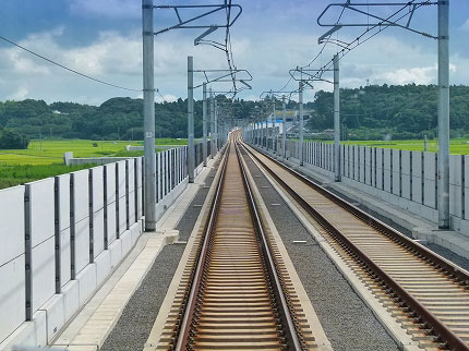 真新しい線路が伸びていく