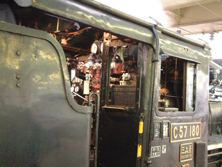しかし、機能を追求した機械はムダのない整った姿をしている。C57型はボイラーの径が小さく動輪が大きい。それが車体長に対してバランスよく見えたのだろう。デザインや数学で話題になる