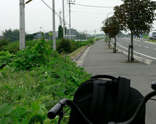 とあるが、駅前にタクシーの姿はない。そのかわり、地下の駐輪場で自転車を貸してくれる。1日400円。まず1,000円を預け、自転車を返却するときに600円を返却する、というきまりになっていた。管理人に道順を聞くと、略地図を指しながら、ここから坂道があって……、と気になることを言う。しかし、走ってみればほぼ平坦な道だ。ママチャリでのんびり走って約20分。田園をゆくサイクリングである。
