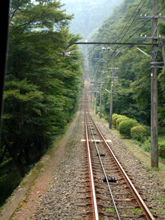 15分ごとに運行されるケーブルカーは、案内放送によると日本でもっとも急勾配だという。傾斜角は31度18分。登りはじめはなだらかな坂道だが、途中のすれ違いポイントから線路が立ち上がるように見える。あれを上るのか、と思うと気合が入る。ほかのお客さんからも嘆声がいくつか聞こえた。もっとも、私たちがケーブルカーを動かしているわけではないし、この車両はケーブルで釣り上げられているだけだから、乗務員の様子は淡々としたものであった。彼は万が一の場合にブレーキをかける要員なのだろう。終点の手前にトンネルがあり、ここがもっとも急勾配の地点である。井戸から這い出たような気分で高尾山駅に着いた。