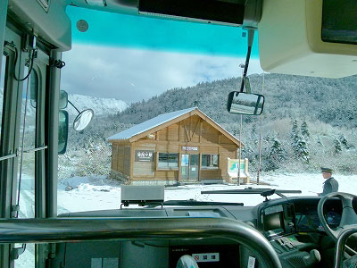 08時35分。弥陀ヶ原停留所に到着。晴れているけれど、辺りは雪が積もっていた。待ち受けていた係員に、次のバスで先に進むと伝えた。係員は台帳なにやら記入し、次のバスはちょうど1時間後だと教えてくれた。承前である。