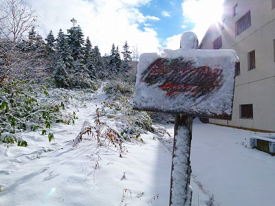 バス停の係員に入り口を訪ねると意外そうな顔をする。雪だからもっと時間が掛かるし、辿りつけないかもしれない、という。時間切れになったら引き返すよと言うとホッとした様子で、道路の反対側を指さした。どちらにしても、ここで1時間を使う用途はカルデラ展望台しかない。もし道が険しくても、日程としては1時間の貯金がある。
